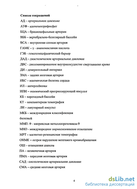 (Василенко Ф.И, 1990), бассейн кровоснабжения мозга (Davalos A et al,
