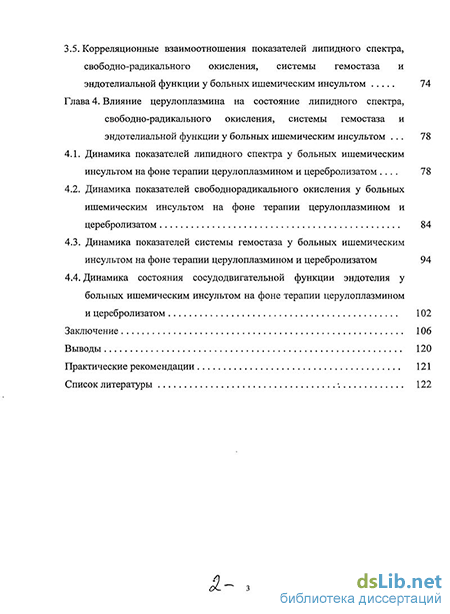 Научная новизна. На основании комплексного изучения показателей липидного спектра, люминолзависимой хемилюминесценции, системы гемостаза и вазорегулирующей функции эндотелия сосудов у больных ишемическим инсультом и определения их взаимосвязи с патогенетическим подтипом и тяжестью заболевания получены новые данные, указывающие на важную роль усиления интенсивности свободнорадикального окисления, дестабилизации липидного обмена, нарушения коагуляционных свойств системы гемостаза и угнетения дилатационных свойств эндотелия сосудов в развитии и прогрессировании данных патологических состояний. Показано, что изменения параметров люминолзависимой хемилюминесценции, липидного спектра, системы гемостаза и эндотелиальной функции сопряжены с тяжестью нарушения мозгового кровообращения и наиболее выражены у больных с тяжелым ишемическим инсультом.