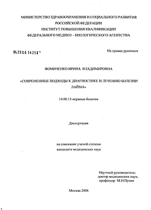 Фомиченко Ирина Владимировна. Современные подходы к диагностике и лечению болезни Лайма [Электронный ресурс] : Диссертация ... кандидата медицинских наук : 14.00.13