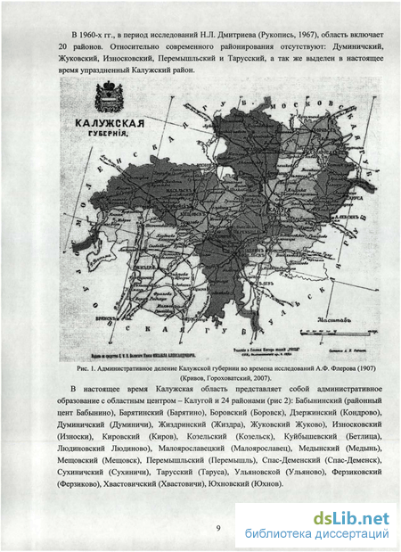 К началу 1917 г. и во времена работы А.Ф. Флерова (1907) в Калужской губернии имелось 11 уездов(рис. 1): Лихвинский (центр г. Лихвин), Перемышльский (Перемышль), Калужский (Калуга), Тарусский (Таруса), Козельский (Козельск), Жиздринский (Жиздра), Малоярославецкий (Малояросвавец), Боровский (Боровск), Медынский (Медынь), Мосальский (Мосальск), Мещовский (Мещовск).