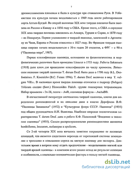 1.1. Краткая история культуры и современное состояние селекции твердой пшеницы на засухоустойчивость, продуктивность и качество зерна ... 6