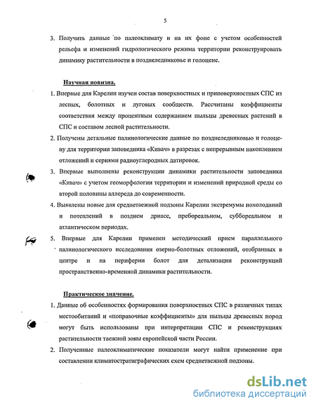 Изучение динамики растительности и природной среды особенно перспективно на модельных территориях с малонарушенным растительным покровом. Одной из них является заповедник «Кивач», где выполнены детальные реконструкции пространственно-временных сукцессии растительности на фоне изменений климата и гидрологии территории в позднеледниковье и голоцене, причем с учетом геоморфологии территории. Полученные данные вполне могут быть экстраполированы на подобные ландшафты средней тайги. Все это делает выполненную работу актуальной и теоретически значимой.