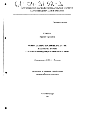 В основу настоящей работы положены материалы, собранные автором в ходе полевых обследований Северо-Восточного Алтая (1990-1993, 1999 гг.). Автором собрано более 5 тыс. гербарных листов и создана база данных по флоре изучаемой территории. Также были использованы гербарные материалы Ботанического института им.В.Л.Комарова РАН (LE), Центрального Сибирского ботанического сада СО РАН, ВНИИ растениеводства им.Н.И.Вавилова (WIR), Алтайского Государственного заповедника (п.Яйлю), Томского, Московского (MW), Алтайского и Санкт-Петербургского (LECB) госуниверситетов; результаты флористических исследований Н.И. Золотухина, Л.Б. Мариной по флоре Алтайского заповедника (Золотухин, 1984, 1985; Золотухин, Золотухина, Марина, 1986), М.М.Силантьевой по флоре Сумультинского хребта, М.Е.Пименовой по флоре бассейна р.Маймы, а также более ранние флористические перечни опубликованные в работах Б.А.Келлера (1914) и В.В.Сапожникова (1897, 1901).