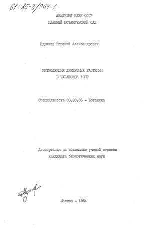 - подведение итогов интродукции и акклиматизации древесных растений в Чувашской АССР;