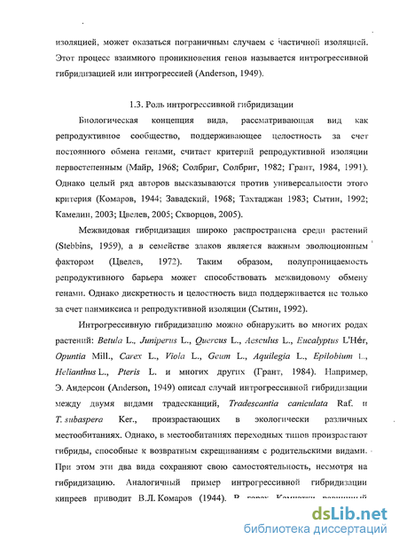 Проблемы систематики дивергирующих таксонов Иногда в природе встречаются популяционные системы, которые нельзя отнести ни к выраженным видам, ни к расам (Грант, 1991). Проблематичные популяционные системы этого типа связаны друг с другом генными потоками разных уровней, промежуточных между уровнями, типичными для рас, с одной стороны, и типичными для видов, с другой. В результате характер изменчивости в этих системах также оказывается промежуточным между интерградацией и прерывистостью.