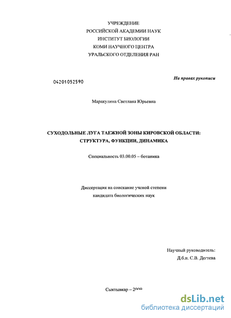 ГЛАВА 6. Динамика основных структур биогеоценозов при восстановительных сукцессиях на суходольных лугах кировской области 187