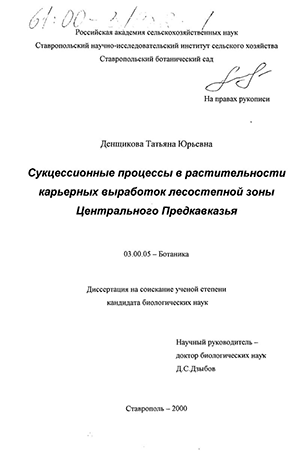 Научна» новизна работы. Впервые в условиях Центрального Предкавказья изучены особенности флористического состава, сложения, экологической приуроченности и хозяйственной значимости серийных растительных сообществ демутационного ряда на месте карьерных и шахтных разработок полезных ископаемых. Сформулированы предложения по оптимизации состава фигопенозов в сторону их сближения с зональными и существенному ускорению демугационного процесса на конкретных почвогрунтах и грунто-смесях.
