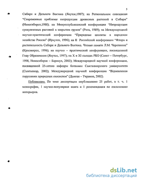 Публикации, По теме диссертации опубликовано 25 работ, в т. ч. 1 монография, I научно-популярная книга и 1 рекомендация по озеленению интерьеров.