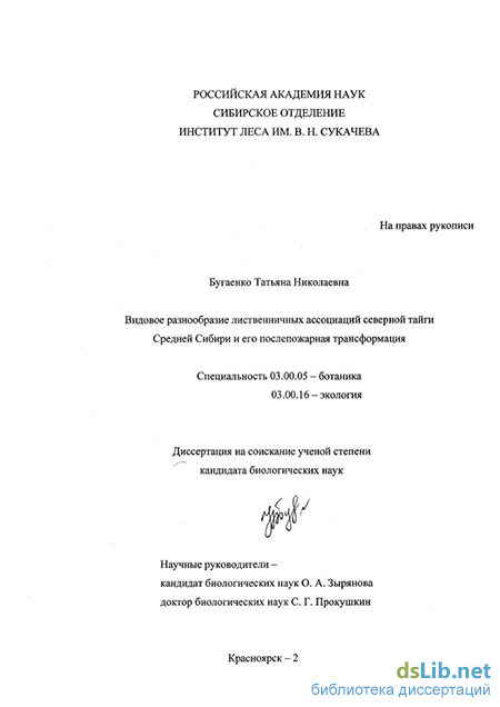 Глава 5. Динамика видового состава и структуры лиственничных ассоциаций на начальных этапах послепожарных сукцессии 58