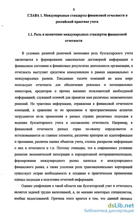 ГЛАВА 1. Международные стандарты финансовой отчетности в российской практике учета 9
