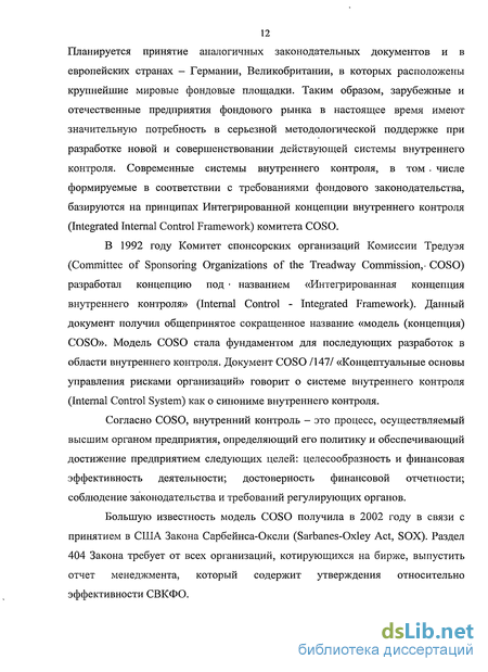 Планируется принятие аналогичных законодательных документов и в европейских странах - Германии, Великобритании, в которых расположены крупнейшие мировые фондовые площадки. Таким образом, зарубежные и отечественные предприятия фондового рынка в настоящее время имеют значительную потребность в серьезной методологической поддержке при разработке новой и совершенствовании действующей системы внутреннего контроля. Современные системы внутреннего контроля, в том . числе формируемые в соответствии с требованиями фондового законодательства, базируются на принципах Интегрированной концепции внутреннего контроля (Integrated Internal Control Framework) комитета COSO.