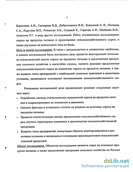 Глава I Теоретические и методологические основы исследования спроса на продукты питания и предложения сельскохозяйственного сырья 9