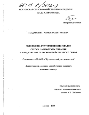 Глава II Экономико-статистический анализ спроса на продукты питания и предложения сельскохозяйственного сырья 42