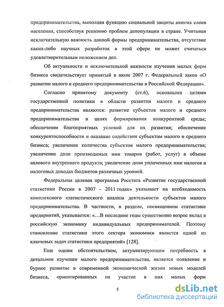 Об актуальности и исключительной важности изучения малых форм бизнеса свидетельствует принятый в июле 2007 г. Федеральный закон «О развитии малого и среднего предпринимательства в Российской Федерации».