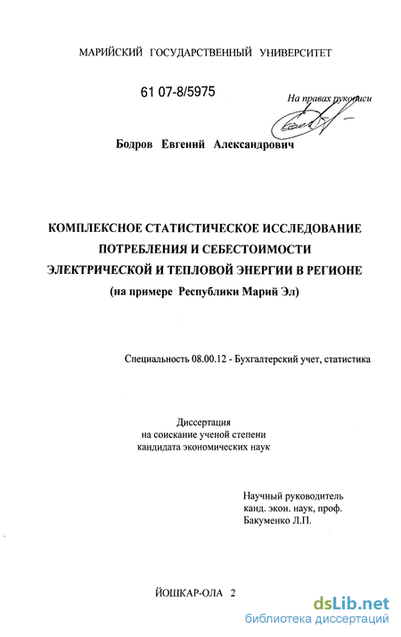 Цель и задачи исследования. Целью диссертационного исследования являются разработка методики и выполнение комплексного статистического исследования себестоимости и потребления электрической и тепловой энергии в Республике Марий Эл. Цель диссертационной работы обусловила постановку и решение следующих задач: