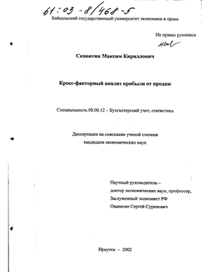 Во второй главе «Построение методики внутреннего кросс-факторного анализа прибыли от продаж и определение резервов ее роста», исходя из произведенных исследований, предлагаются новые методики анализа хозяйственной j$ деятельности предприятия и обосновываются их преимущества на практике.