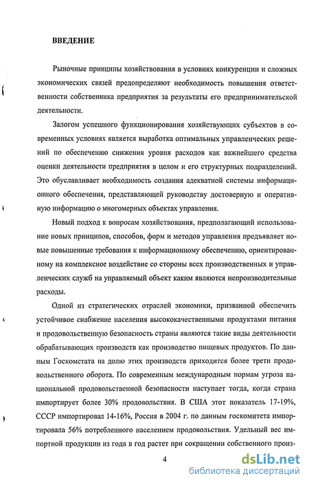 С переходом на рыночные отношения и в результате проводимой аграрной реформы изменились организационно-экономические условия функционирования предприятий АПК. В результате приватизации в обрабатывающих і производствах России 60% крупных и средних предприятий были преобразо ваны в открытые акционерные общества. В условиях дальнейшего углубления кризисных явлений, существенного спада объемов производств пищевых продуктов является актуальным выявление и полное использование внутрипроизводственных резервов и снижения себестоимости продукции. Экономное и рациональное использование ресурсов, по существу, означает дополнительный выпуск высококачественных продуктов питания. В системе мер, направленных на повышение эффективности использования ресурсов, важная роль принадлежит \ снижению и устранению различного рода непроизводительных расходов и по терь.