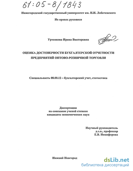 вопросов оценки достоверности показателей бухгалтерской отчетности для использования ее в качестве информационной базы для обоснования финансовых и инвестиционных решений заинтересованными пользователями, необходимость в новых подходах к решению данных проблем в экономической науке, а также практическая востребованность в современном методическом аппарате процедур ее оценки обусловили выбор темы диссертационной работы, определили круг исследуемых вопросов, ее цель, предмет и содержание.