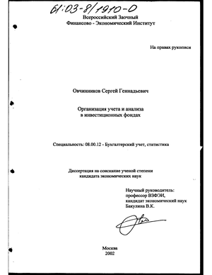 Предмет и объект исследования. Предметом диссертационного исследования является организация системы бухгалтерского учета и экономического анализа в инвестиционных фондах. В соответствии с избранным предметом диссертационной работы объектом исследования стала деятельность инвестиционных фондов Челябинской области («Диалог», «Тройка», «Иком», «Ресурс») за период с 1996 по 2001 годы.