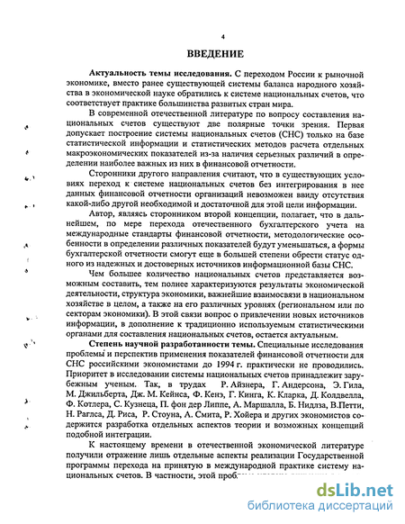 проблемы' и перспектив применения показателей финансовой отчетности для СНС российскими экономистами до 1994 г. практически не проводились. Приоритет в исследовании системы национальных счетов принадлежит зарубежным ученым. Так, в трудах Р. Айзнера, Г. Андерсона, Э. Гила, М. Джильберта, Дж. М. Кейнса, Ф. Кенэ, Г. Кинга, К. Кларка, Д. Колдвелла,