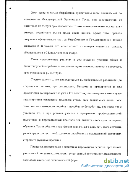 Следует заметить, что принудительно высвобождаемые работники (по сокращению штатов, при ликвидации, банкротстве предприятий и др.) практически все переходят на учет в СЗ, поскольку по закону им в этом случае гарантируются сохранение трудового стажа, всех социальных льгот. Боле того, выплата выходного пособия и пособия по безработице, производится с участием СЗ, а при условии участия в программах профессиональной подготовки и переподготовки производится выплата стипендии за период обучения. Таким образом, специфика и социальная значимость этого сегмента рынка труда диктуют необходимость углубленных исследований различных сторон его функционирования.