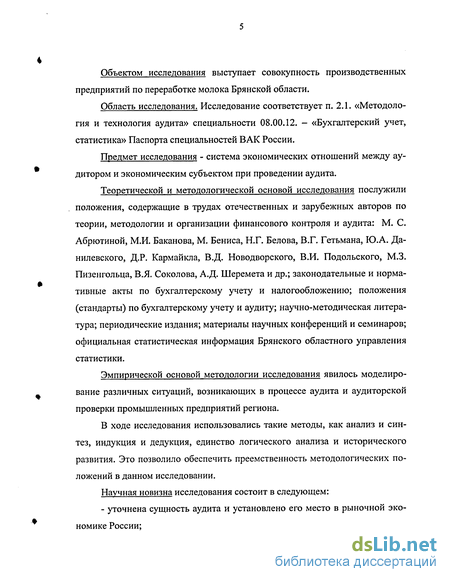 Область исследования. Исследование соответствует п. 2.1. «Методология и технология аудита» специальности 08.00.12. — «Бухгалтерский учет, статистика» Паспорта специальностей ВАК России.