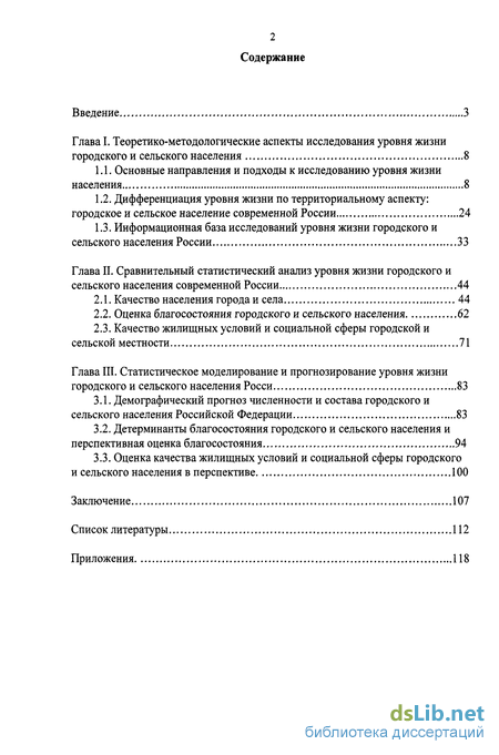 Цель и задачи исследования. Целью диссертационной работы является разработка методики комплексного сравнительного анализа уровня жизни городского и сельского населения России.