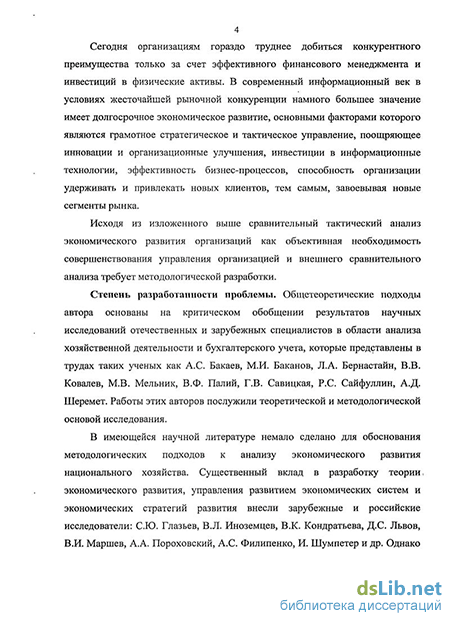 Проблемы сравнительного анализа рассматривались в работах А М Вершинина, Б И Майданчика,, Н В Свиридовой, Д. Стоуна, Ш Тратта, Р Ф Чангли и др Следует отметить отсутствие целостных научных исследований, посвященных специфике сравнительного тактического анализа экономического развития организаций в условиях рыночных отношений Разработка рекомендаций по организации сравнительного тактического анализа экономического развития организаций является важным условием повышения их конкурентоспособности и улучшения финансовой устойчивости