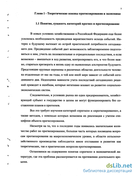 Глава 1 Теоретические основы прогнозирования в экономике 7