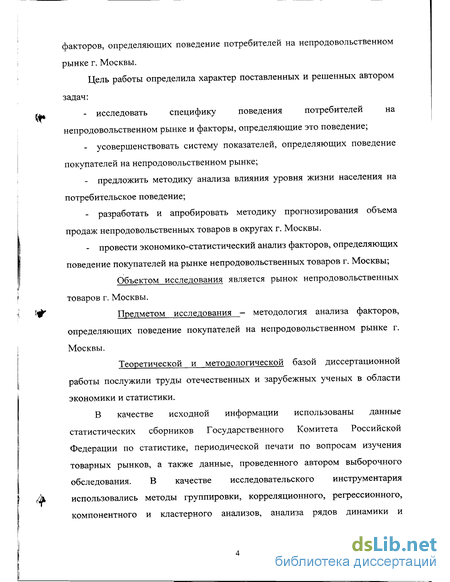 Предметом исследования - методология анализа факторов, определяющих поведение покупателей на непродовольственном рынке г. Москвы.