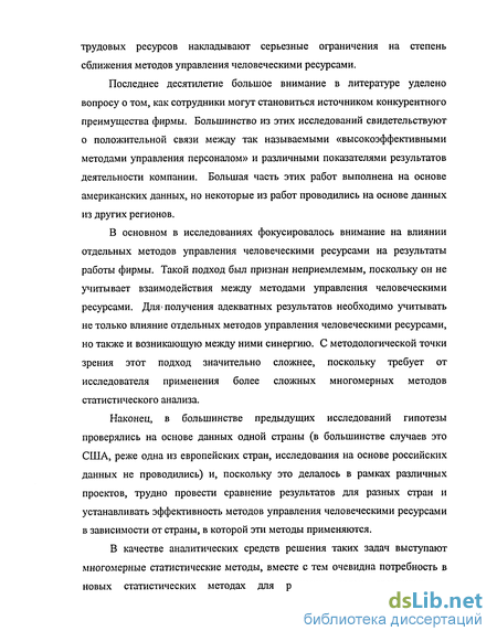 В основном в исследованиях фокусировалось внимание на влиянии отдельных методов управления человеческими ресурсами на результаты работы фирмы. Такой подход был признан неприемлехмым, поскольку он не учитывает взаимодействия между методами управления человеческими ресурсами. Для* получения адекватных результатов необходимо учитывать не только влияние отдельных методов управления человеческими ресурсами, но также и возникающую между ними синергию. С методологической точки зрения этот подход значительно сложнее, поскольку требует от исследователя применения более сложных многомерных методов статистического анализа.