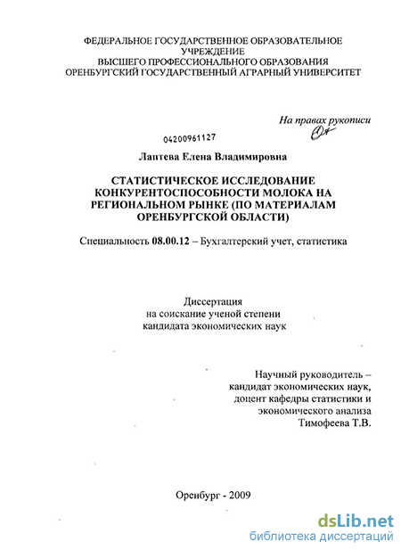 Апробация результатов диссертационного исследования. Основные результаты выполненного диссертационного исследования изложены и получили одобрение на Межвузовской научно-практической конференции, посвященной 15-летию кафедры статистики и экономического анализа Оренбургского ГАУ (г. Оренбург, 2007 г.), Межрегиональной научно-практической конференции, посвященной памяти члена-корреспондента РАСХН А.А. Семенова (г. Москва, 2007 г.), Международной конференции «Россия как трансформирующееся общество: экономика, культура, управление» (г. Оренбург, 2007 г.), Российской научно-практической конференции «Инновации и традиции в образовании и науке» (г. Бузулук, 2008 г.), Всероссийской научно-практической конференции «Специалисты АПК нового поколения» (г. Саратов, 2008 г.), Международной научно-практической конференции «Наука и производство-2009» (г. Брянск, 2009 г.), III Всероссийской научно-практической конференции «Аграрная наука в XXI веке: проблемы и перспективы» (г. Саратов, 2009 г.), Международной научно-практической конференции «Современные проблемы экономики, управления и юриспруденции» (г. Мурманск, 2009 г.).