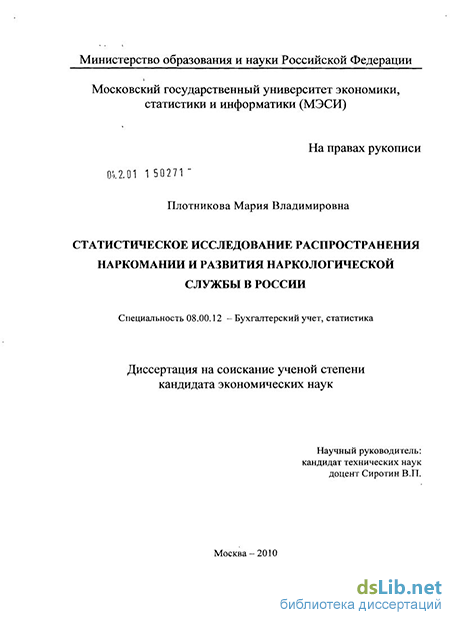 Степень разработанности проблемы. Исследованием проблемы распространения наркомании и увеличения объема рынка незаконного оборота наркотиков, а также оцениванием экономических, медико-социальных и других видов последствий посвящены труды многих российских и зарубежных ученых: Е.А.Кошкиной, П.Коппа, А.А.Куклина, И.Н.Пятницкой, А.Н.Сергеева, Г.Г.Силласте, Р.Хартнолла, Ф.Э.Шереги и других. В исследовании социальных проблем современного общества, одной из которых является распространение наркомании, большую роль сыграли труды российских ученых-статистиков: И.И.Елисеевой, О.В.Кучмаевой, А.А.Романова, А.Е.Суринова и других. Проблемы обработки и анализа многомерной статистической информации, в частности, при моделировании социально-экономических процессов и явлений, а также разработка методических вопросов статистического исследования на протяжении многих лет находятся в центре внимания российских исследователей: Т.Н.Агаповой, С.А.Айвазяна, О.Э.Башиной, Т.А.Дубровой, М.Р.Ефимовой, В.Г.Минашкина, В.С.Мхитаряна, Б.Т.Рябушкина и других.