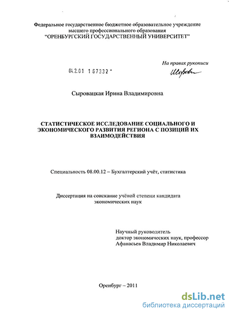 Информационная база исследования. Информационное обеспечение работы составили официальные статистические данные Росстата, Территориального органа Федеральной службы государственной статистики по Оренбургской области, информационные ресурсы Internet. Обработка статистической информации проводилась с использованием современных пакетов прикладных статистических программ Statistica (6.0) for Windows, Stata 6.0.