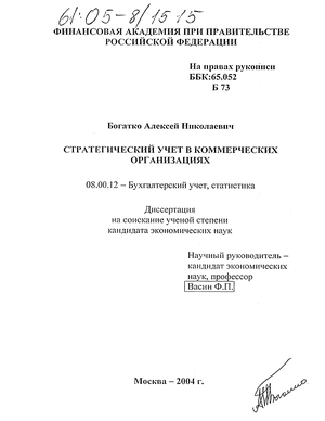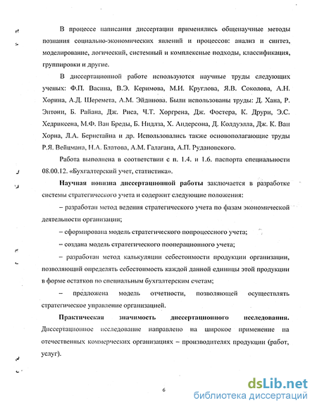 Предметом исследования диссертационной работы является методология формирования стратегического учета.