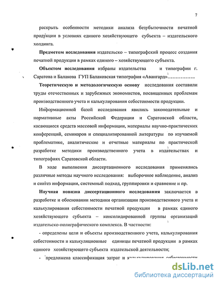 Цель диссертационного исследования заключается в разработке и обоснованности методических подходов к организации производственного учета в издательско-полиграфическом комплексе.