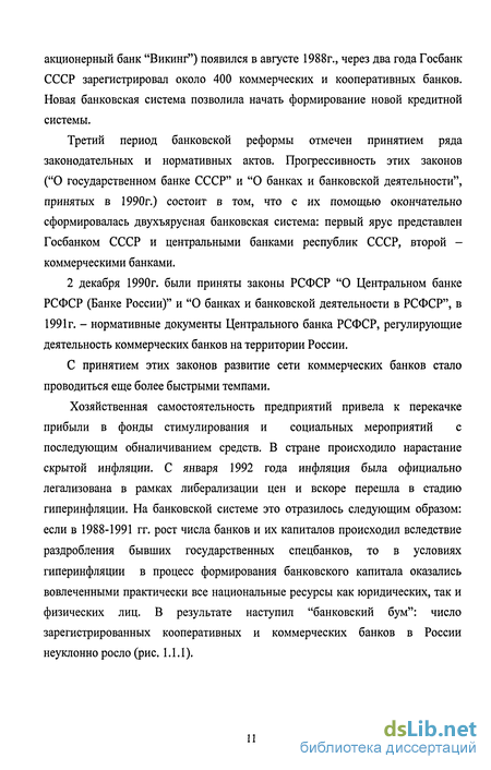 Хозяйственная самостоятельность предприятий привела к перекачке прибыли в фонды стимулирования и социальных мероприятий с последующим обналичиванием средств. В стране происходило нарастание скрытой инфляции. С января 1992 года инфляция была официально легализована в рамках либерализации цен и вскоре перешла в стадию гиперинфляции. На банковской системе это отразилось следующим образом: если в 1988-1991 гг. рост числа банков и их капиталов происходил вследствие раздробления бывших государственных спецбанков, то в условиях гиперинфляции в процесс формирования банковского капитала оказались вовлеченными практически все национальные ресурсы как юридических, так и физических лиц.