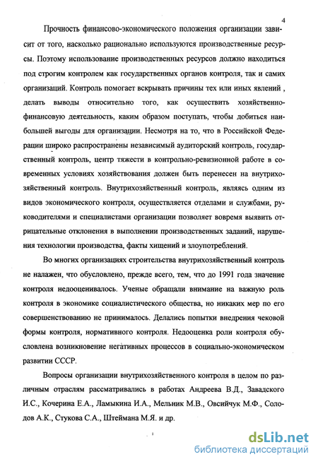 Актуальность проблемы,внутрихозяйственного контроля в организациях строительства определила выбор темы и основные направления диссертационного исследования.