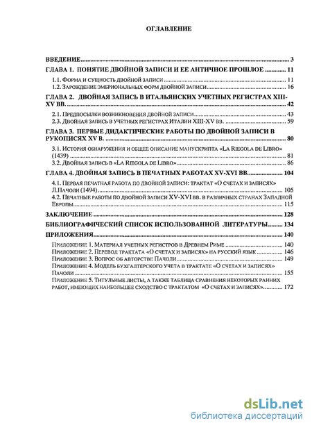 Структура работы определена целью и задачами исследования. Диссертация, включает в себя введение, четыре главы, заключение, список использованных источников (всего 154 наименования) и пять приложений. В работу также включены иллюстрации, имеющие историческую ценность (факсимиле страниц некоторых учетных регистров XHI-XV вв., манускриптов, начальных страниц инкунабул, палеотипов, а также последующих первых печатных изданий по двойной записи).