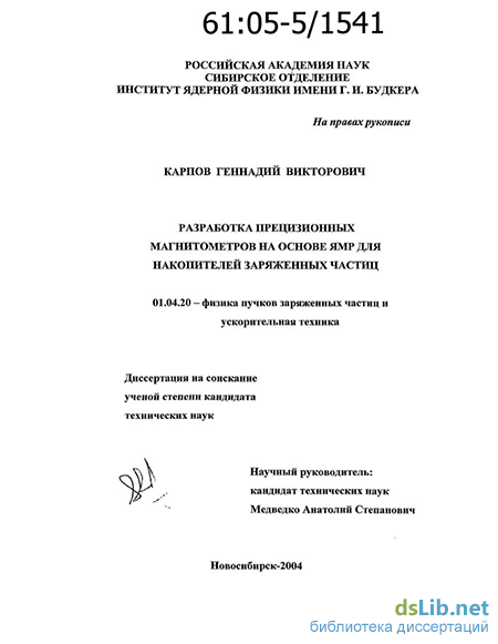 течение многих лет ведутся исследования в области физики высоких энергий со встречными электрон-позитронными пучками. Ряд экспериментов, проводимых в накопителях заряженных частиц, требует прецизионных измерений индукции магнитного поля в поворотных магнитах кольца. Эти измерения традиционно обеспечиваются магнитометрами на основе ядерного магнитного резонанса (ЯМР магнитометрами). В ИЯФ СО РАН в разные годы разрабатывались и успешно эксплуатировались магнитометры на основе различных методов ЯМР, таких как "автодинный" метод и метод с проточной жидкостью. С конца 80-х годов появился ряд новых задач по прецизионным измерениям постоянных магнитных полей: