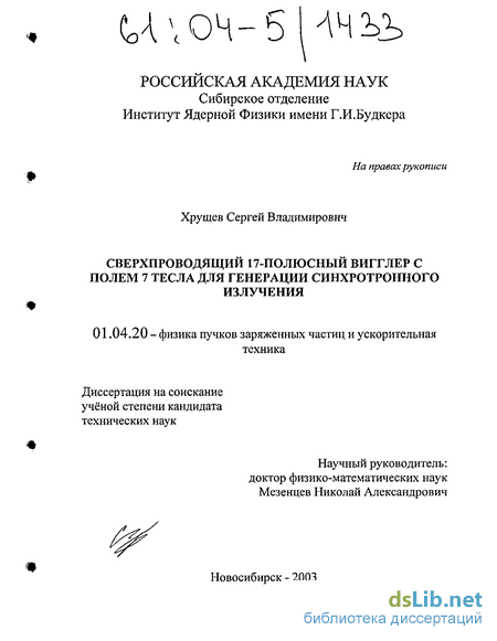4.3. Влияние вигглера на параметры электронного пучка. 62