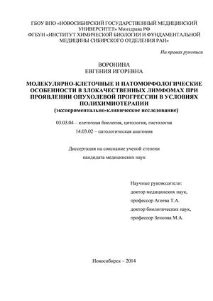 - Исследование опухолевой прогрессии диффузной В-крупноклеточной лимфомы у пациентов в процессе полихимиотерапии: сравнительная молекулярно-клеточная характеристика опухоли у пациентов до лечения и после курсов химиотерапии по поводу рецидивов