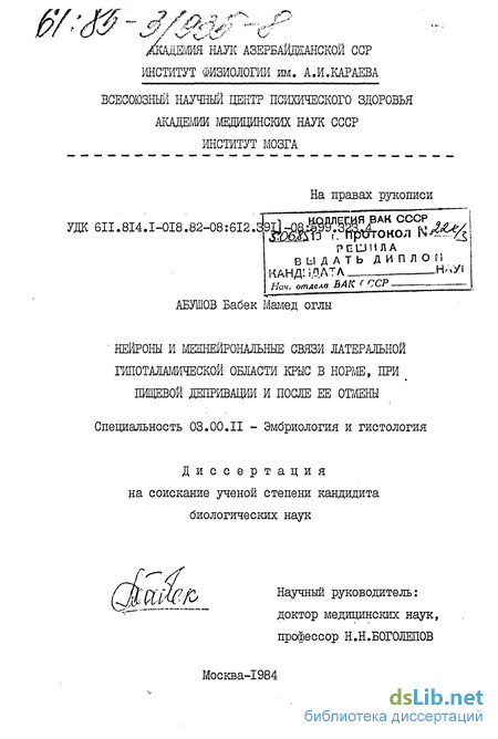 О сложной мозаической структуре латеральной гипоталамической области свидетельствуют не только электрофизиологические, но и нейрохимические исследования (В.А.Заболотних,1963; oids ,1977 и др.). Вместе с тем лишь единичные работы посвящены структурной организации латеральной гипоталамической области (И.Н.Боголепова, 1968; Т.А.Леонтович,1972 и др.). В частности у крыс цитоархитекто-нически выделяют три части - переднюю, среднюю и заднюю, отличаю-щиеся по размерам и распределениям нейронов (В.С.Кесарев,1964). • В последнее время выявлены существенные нарушения функциональной деятельности латеральной гипоталамической области при пищевой депривации и морфологические изменения нейронов в этих условиях. Однако морфологические работы очень мало и проведены они только с применением светооптических методов исследования (Ш.К.Та-гиев, А.И.Гарибов,1974; А.И.Гарибов,1976; Э.Р.Садыхова,1982).