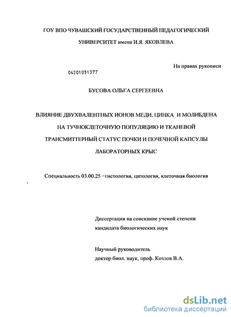Актуальность темы. Тучным клеткам почки и ее капсулы обычно отводится роль участника в формировании почечного фиброза при различной патологии (S. К. Majored, 1992; J. Pardo et al., 2000; I. S. D. Roberts et al., 2000; S. Kondo et al., 2001). Между тем, тучные клетки способны как синтезировать, так и поглощать биолоп-яески активные вещества, а, следовательно, должны принимать активное участие в паракринной регуляции почечных функций. Почка - уникальный орган, который в силу своей морфофункционалыюй организации подвергается постоянной значительной гидратации в результате перемещения через нее двух противоположных водных потоков: один, выводящий воду вместе с продуктами метаболизма и второй - реабсорбирующий воду и те продукты метаболизма, которые должны быть оставлены в организме. Если роль эпителия почечных канальцев и клубочкового аппарата изучена достаточно полно, то участие в этих процессах тучных клеток практически не исследовано, тогда как немалая часть выводимых почкой веществ, например, биоамины, являются субстратами метаболизма тучных клеток, а ферменты, участвующие в биодеградации этих веществ, металлозависимы. То есть организация их активньгх центров требует присутствия микроэлементов. Одним из естественных путей поступления микроэлементов в организм является потребление их с питьевой водой. До сих пор одними из факторов, лимитирующих ПДК для ионов цинка и меди в питьевой воде, являются ее органолептические свойства (СанПиН 2.1.4.1074-01), это позволяет усомниться в токсикологической безопасности данных параметров. Кроме того, в настоящее время приобрели широкую популярность различные БАД, содержащие микроэлементы, которые зачастую используются бесконтрольно. В доступной литературе отсутствуют публикации, в которых бы рассматривалось влияние цинка, меди и молибдена на функциональное состояние почек, тучноклеточную популяцию этого органа и его капсулы и биоаминную насыщенность почечных структур (как известно, эти металлы участвуют в синтезе и биодеградации серотонина и катехолами-нов; ионы меди стимулируют дегрануляцию тучных клеток с развитием у грызунов «медного» дерматита (А. П. Авцын и соавт., 1991). Следует отметить, что вследствие антагонистических отношений цинка и меди, меди и молибдена, избыток поступления одного металла влечет за собой дефицит другого, поэтому эффекты данных микроэлементов должны рассматриваться в неразрывной связи друг с другом (А. П. Авцын и соавт., 1991; Л. Р. Ноздрюхина, 1977).