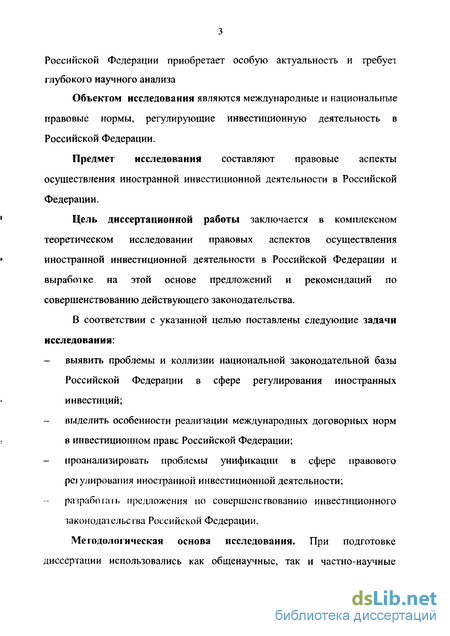 разработан, предложения по совершенствованию инвестиционного законодательства Российской Федерации. Методологическая основа исследования. При подготовке диссертации использовались как общенаучные, так и частно-научные методы исследования, включая такие, как меюд системного анализа, историко-правовой, логический, формально-юридический, сравнительного правоведения, анализа и обобщения научных и нормативных материалов, а также судебно-арбитражной практики.