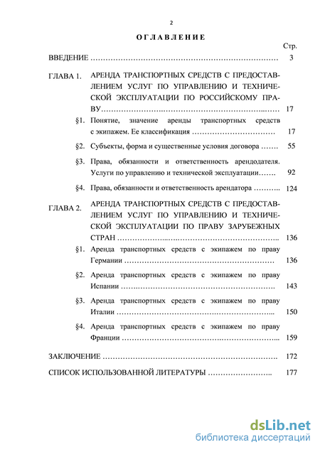 ГЛАВА 2. Аренда транспортных средств с предостав-лением услуг по управлению и технической эксплуатации по праву зарубежных стран 136
