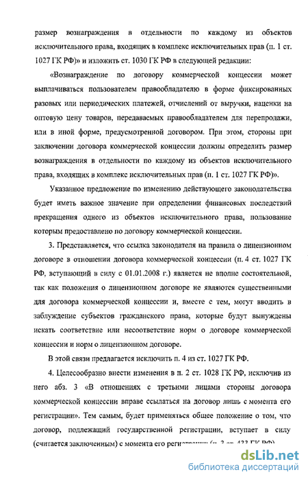 договоре в отношении договора коммерческой концессии (п. 4 ст. 1027 ГК