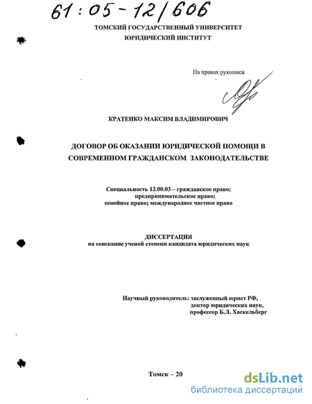 1.5. Правовая природа договора об оказании юридической помощи с.61