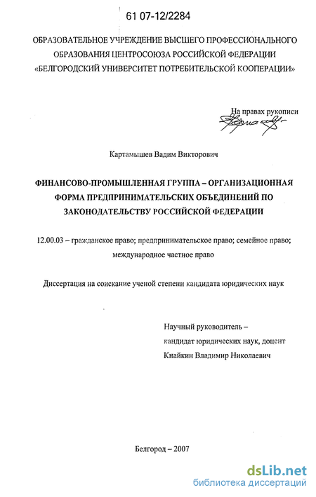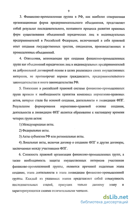 Э. П. Дунаев . Однако, в связи с тем, что финансово-промышленные группы являются новым и достаточно сложным правовым образованием российской действительности, разработки таких ученых-юристов как В. В. Лаптев3, Н. И. Михайлов , В. Н. Петухов5 в данной области на сегодняшний день не затронули все аспекты данного правового явления.