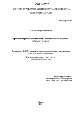 Научная новизна диссертации. Научная новизна диссертационного исследования состоит в том, что оно является первым в современной науке российского гражданского права комплексным исследованием проблем гражданско-правовой защиты смежных прав организаций эфирного и кабельного вещания.